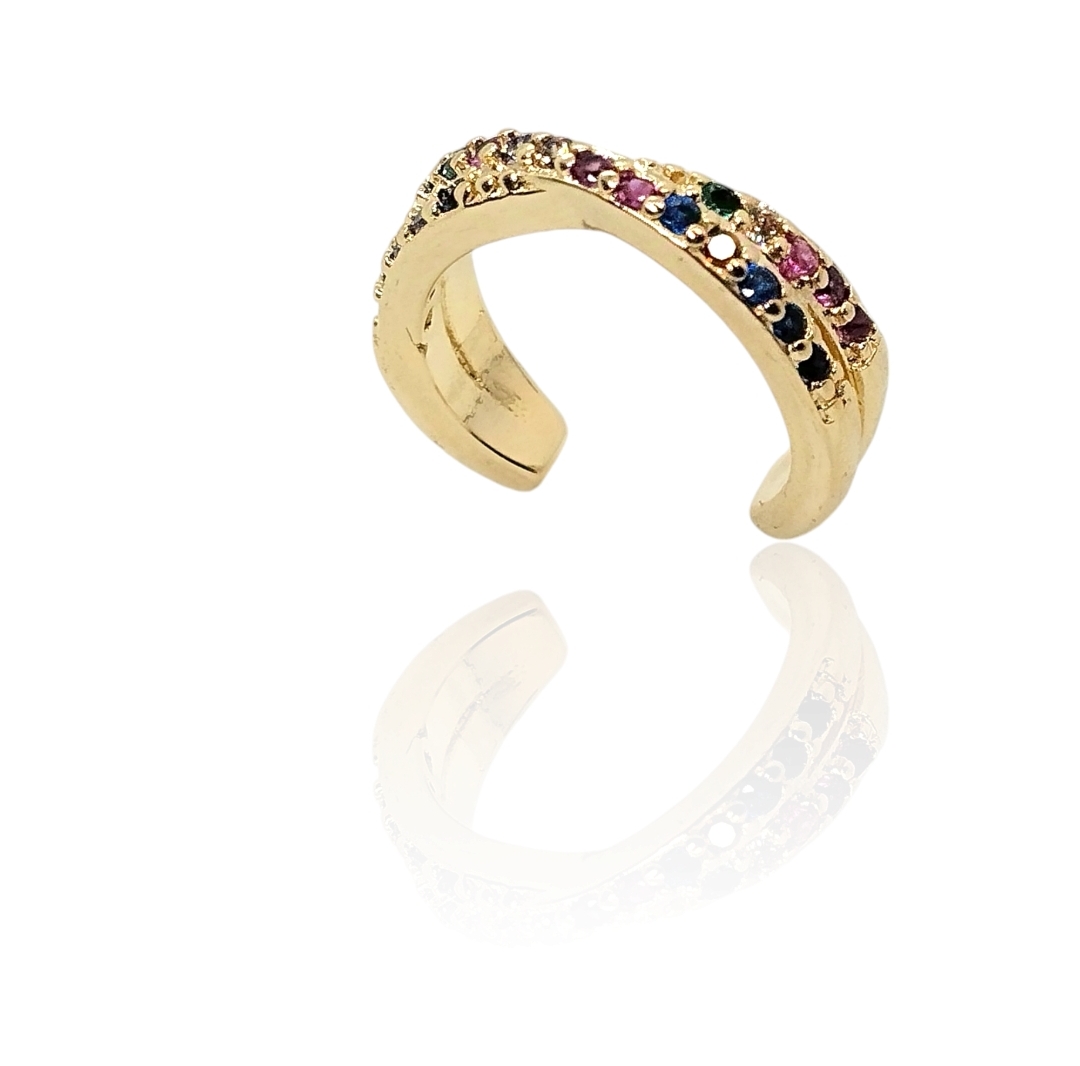 ✨ Brinco Argola Dupla Cruzada Cravejado Colorido Piercing Fake Banhado Ouro – Modernidade e Brilho Sem Perfuração ✨