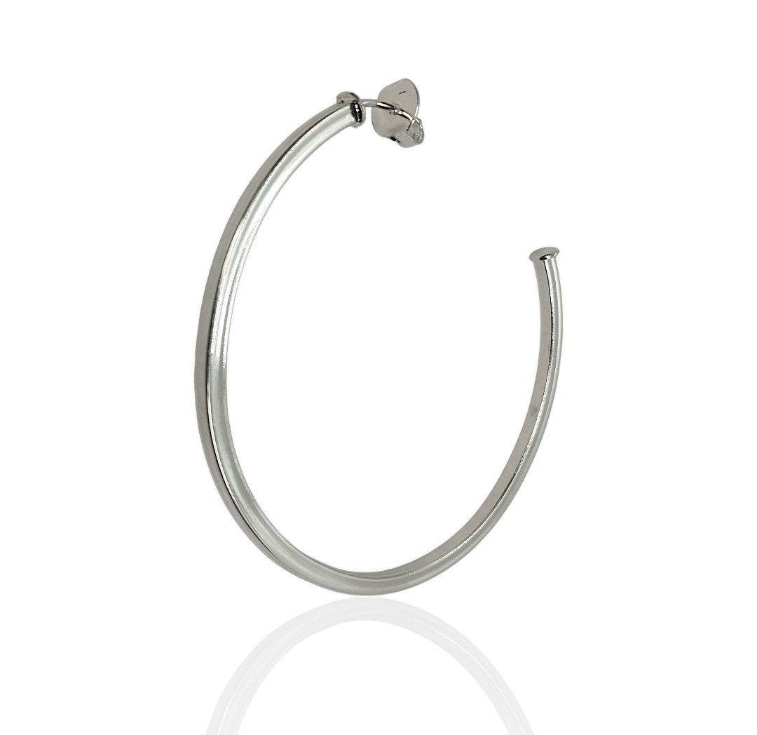 Se você ama peças versáteis, com presença e aquele toque de elegância descomplicada, o Brinco argola tubular chata 50mm fio 2mm banhado prata é tudo o que seu porta-joias precisa! Uma argola de impacto sutil, que une o melhor do design contemporâneo com o brilho atemporal do banho em prata.