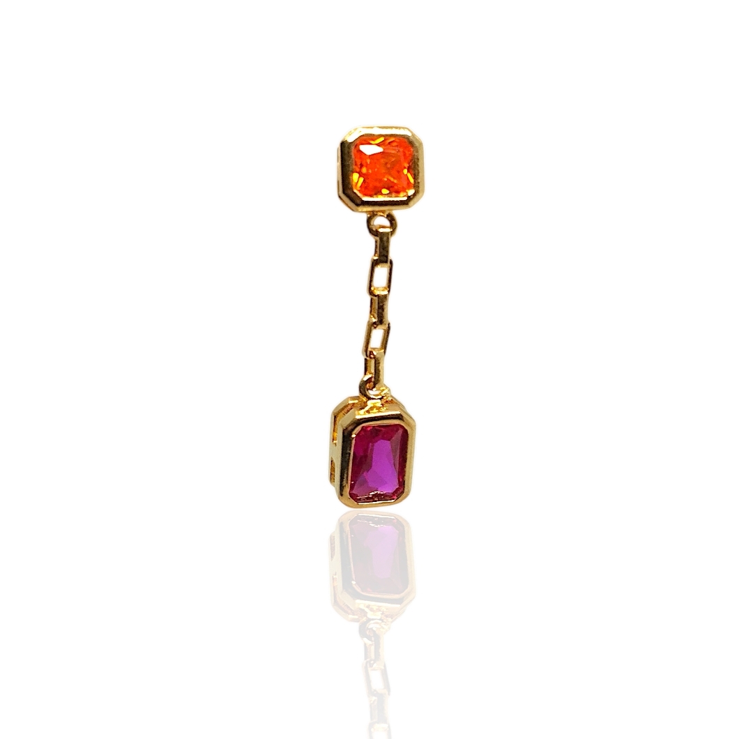 ✨ Brinco Base Quadrada com Pêndulo Retangular Colorido – Elegância que Encanta | Banhado a Ouro ✨