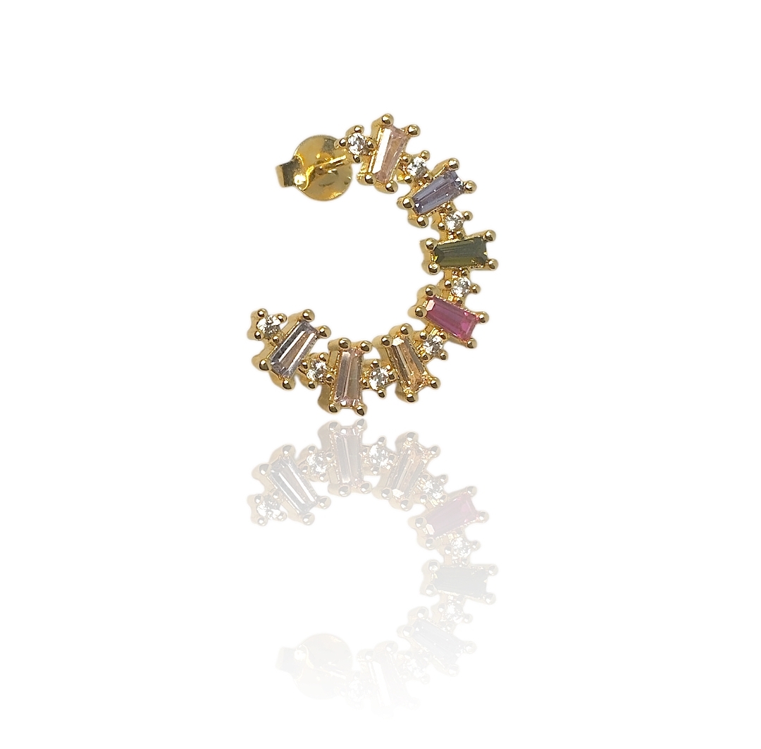O Brinco C com Zircônias Coloridas da Luxing Semijoias é uma peça vibrante e cheia de personalidade, perfeita para quem busca um acessório moderno e sofisticado. Seu design exclusivo em formato de "C" confere um toque contemporâneo ao visual, enquanto as zircônias coloridas cuidadosamente cravejadas proporcionam brilho intenso e um efeito luminoso encantador. O banho em ouro de alta qualidade adiciona elegância e requinte à peça, tornando-a indispensável para compor produções marcantes.