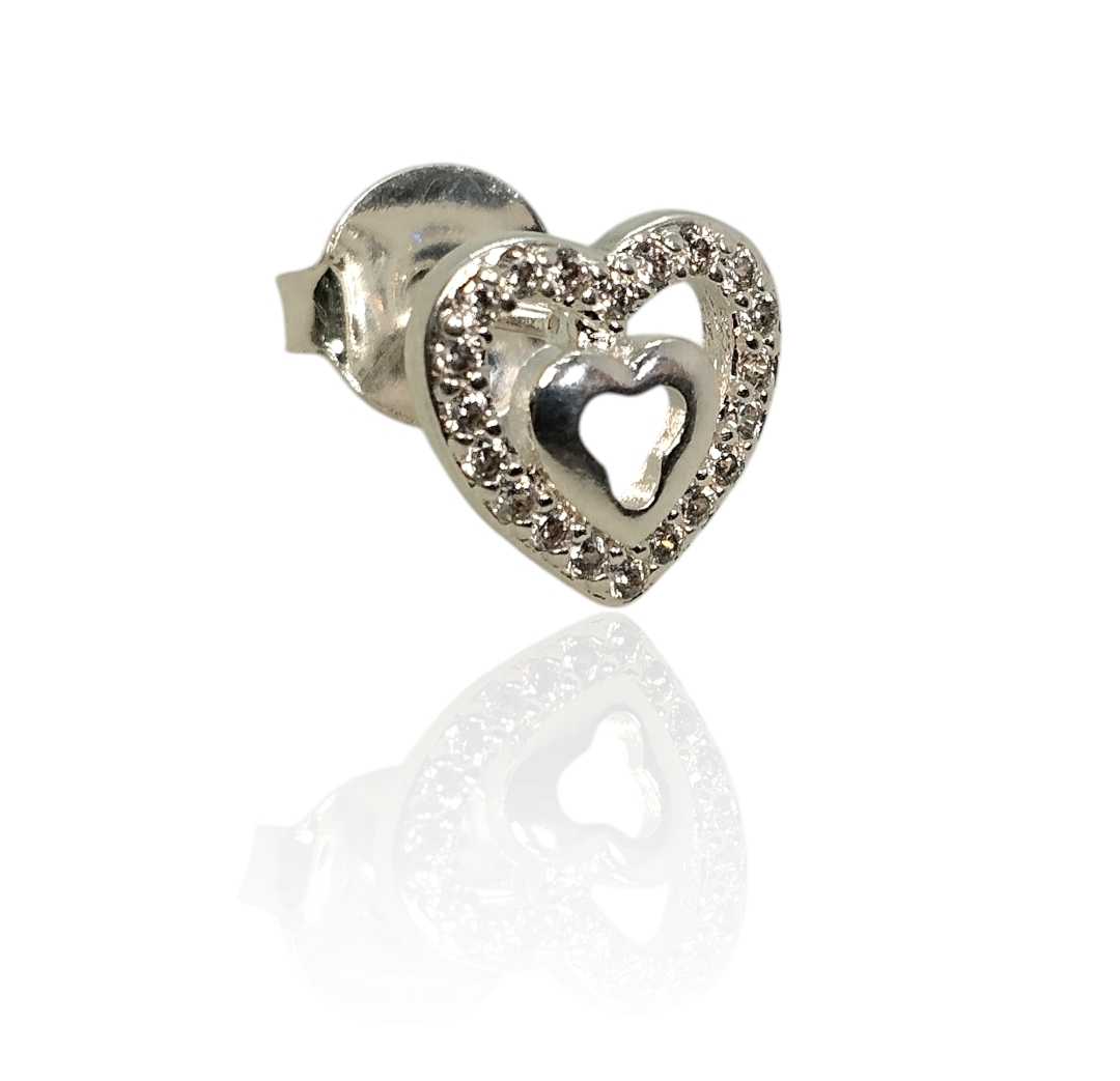 ✨ Brinco coração perfil com micro zircônias e coração central liso banhado prata – O amor em sua forma mais brilhante. ✨