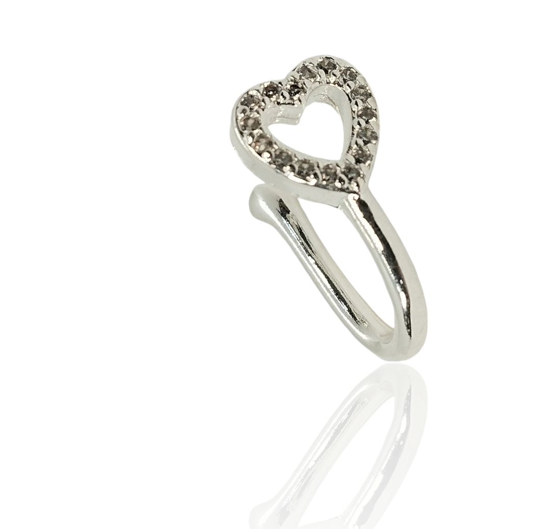 Um toque romântico, moderno e cheio de personalidade! Ele é um piercing fake em forma de coração cravejado- 1pç, ideal para quem ama inovar no visual sem precisar de furos adicionais.