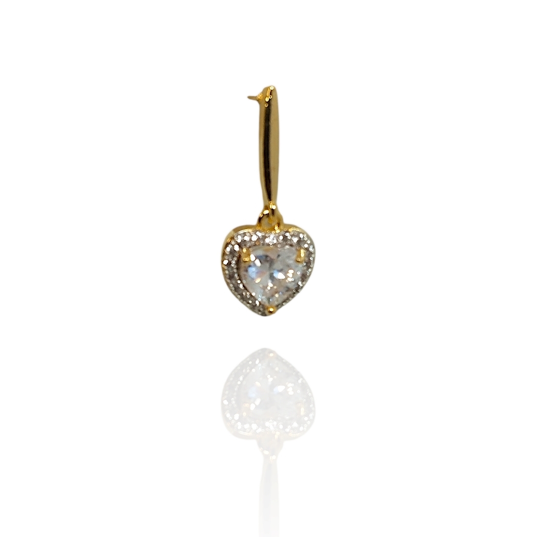 ✨ Brinco Pêndulo com Haste e Coração Cravejado – Banhado a Ouro ✨