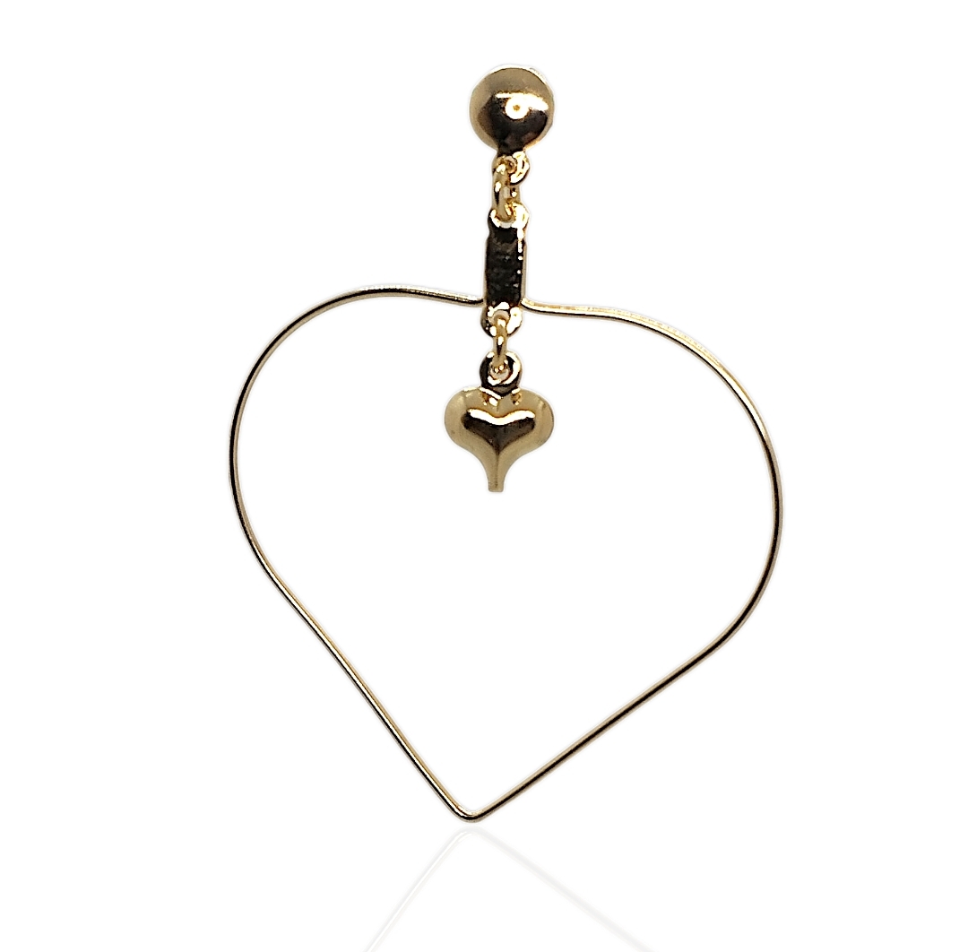 ✨ Brinco Perfil de Coração com Pingente de Coraçãozinho – Banhado a Ouro
