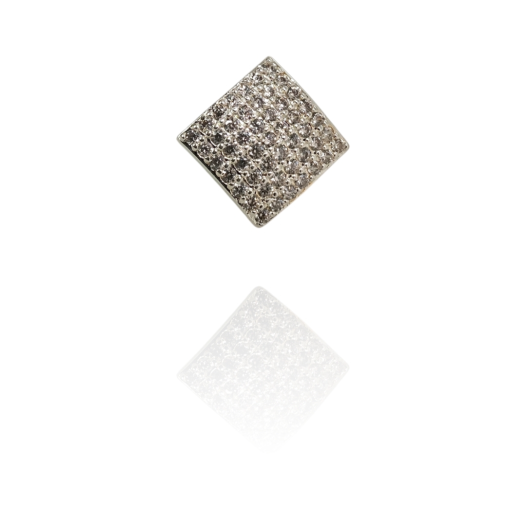 ✨ Brinco Quadrado Convexo Cravejado – Banhado a Prata