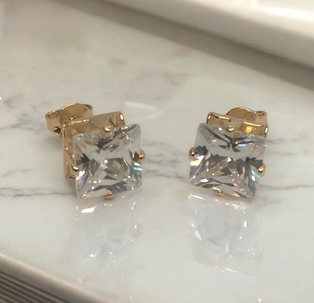 ✨ BRINCO QUADRADO PONTO DE LUZ – 3 TAMANHOS (4MM | 6MM | 8MM) – BANHADO A OURO