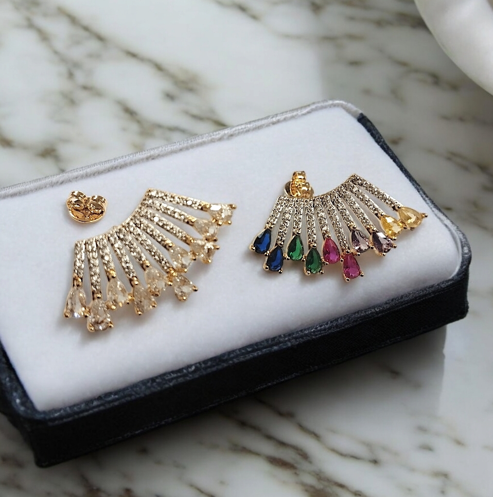Banho de ouro reluzente, que complementa o brilho das pedras com um toque sofisticado e atemporal.