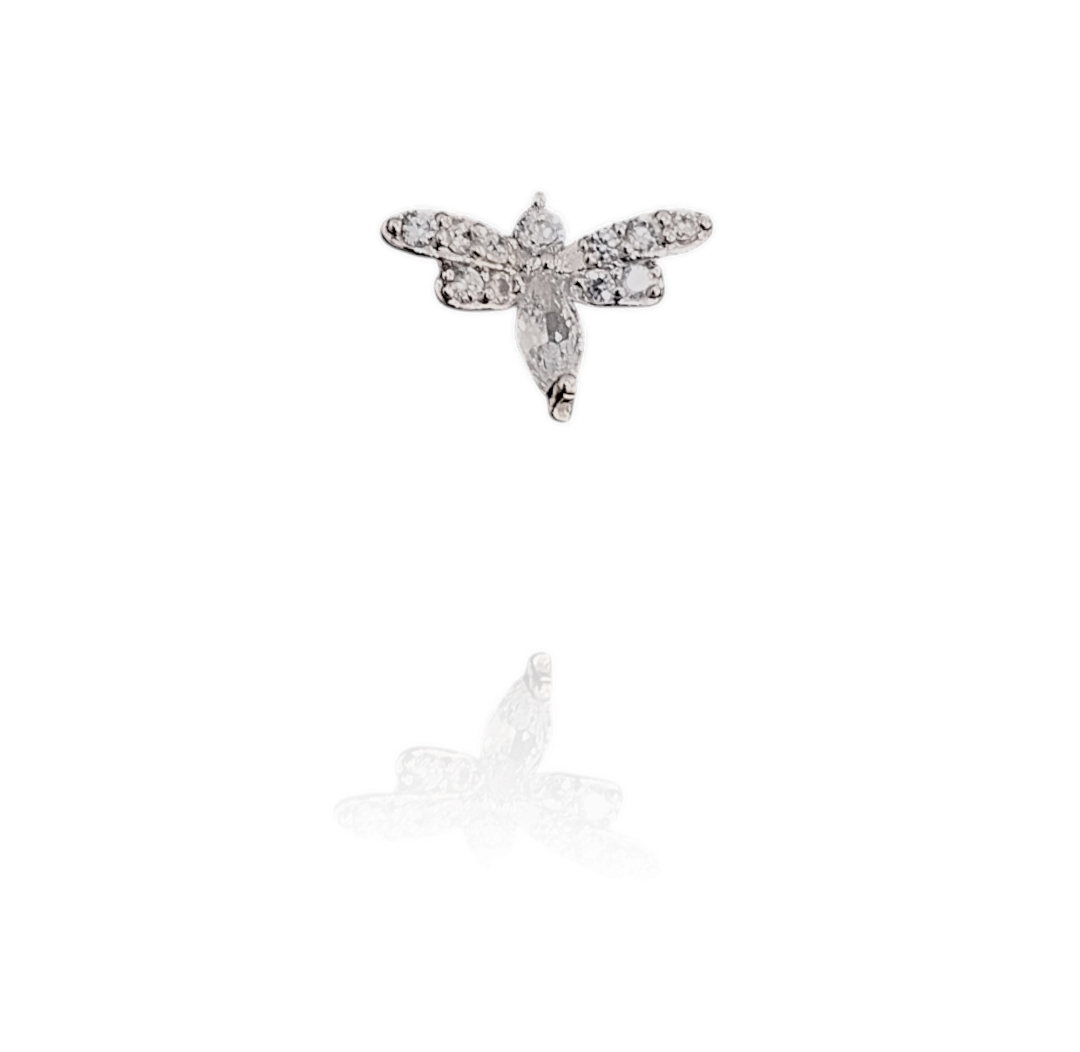 Ele traz o charme de uma abelhinha estilizada, totalmente cravejada com micro zircônias e uma zircônia cristal central que rouba a cena com seu brilho intenso.