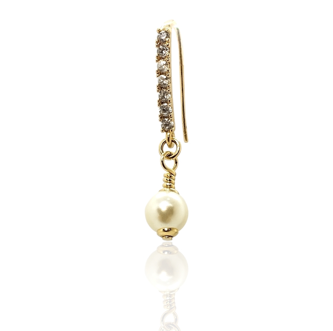 ✨ Brinco Haste com 7 Zircônias e Pérola Pêndulo Banhado a Ouro ✨