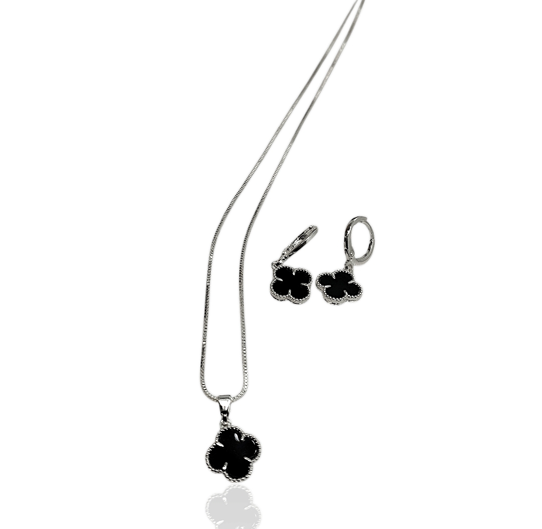 ✨ Conjunto Trevos Zircônias Pretas Cor Ônix Choker 45cm + Brinco Banhado Prata | Elegância e Proteção em Uma Joia Sofisticada ✨